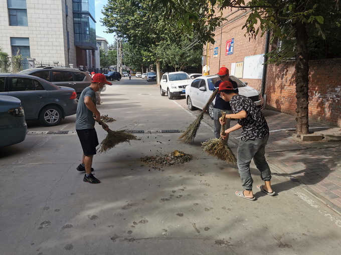 九月初的石家庄依然骄阳似火。志愿服务队的队员们顾不上酷热和蚊虫叮咬,一进入社区,就立刻投入到热火朝天的劳动中。志愿者们组成两个小队:一队负责清除房旁路边的棘针蒺藜和杂草;另一队负责清扫道路和平时注意不到的卫生死角。大家统一佩戴志愿服务“小红帽”,以社区环境卫生的绿化、亮化、净化、美化为目标,认真清扫落叶、清理杂物、运送垃圾、清除小广告。通过这次志愿服务活动,改善了整个生活社区的卫生条件,为社区群众营造了优美舒适的生活环境。看到社区卫生环境焕然一新,社区居民们纷纷为这些志愿服务的“小红帽们”点赞叫好。