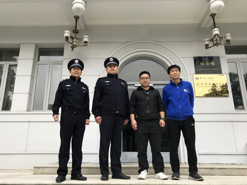 王成同学与武汉市公安局东湖生态旅游风景区分局水上派出所赵所长一行合影