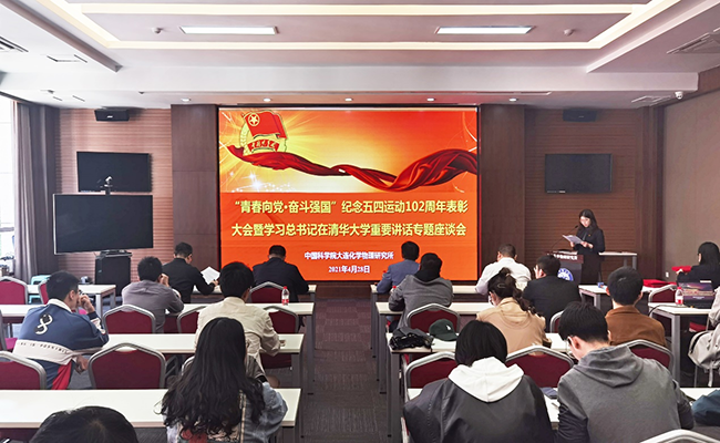 4月28日下午,中国科学院大连化学物理研究所团委在能源基础楼一楼会议室举行“青春向党·奋斗强国”纪念五四运动102周年表彰大会暨学习总书记在清华大学重要讲话专题座谈会。党委副书记、纪委书记毛志远,相关职能部门负责人,团委委员,各团支部成员参加此次会议。