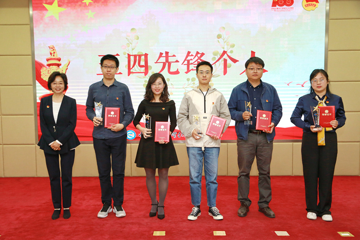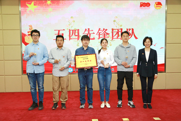 党委书记张丽萍为中国青年五四奖章获得者严开祺及每位理化所“五四先锋奖”获奖团队及个人颁发证书和奖杯,并与获奖同志合影留念。