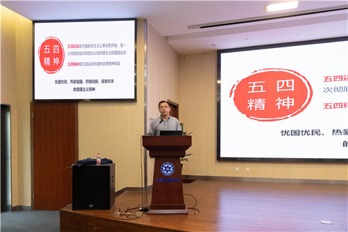 随后,李润伟以“五四精神的当代价值”为主题作了党史学习专题报告。他在报告中回顾了五四运动的背景和历史意义,引导广大团员学习党的历史,坚定党的信念,深入学习了爱国、进步、民主、科学的五四精神核心,同时以嫦娥探月团队、北斗团队、长征火箭团队等优秀的青年科学家团队为例,生动阐述了五四精神在当代青年中的继承与发扬。他以习近平总书记对青年人的寄语结束本次团课,提出对当代青年的六点要求,要树立远大理想,热爱伟大祖国,担当时代责任,勇于砥砺奋斗,练就过硬本领,锤炼品德修为,希望新时代青年人能够继续发扬五四精神,让青春在为祖国、为人民、为民族、为人类的奉献中焕发出绚丽的光彩!最后,大会在激昂的共青团团歌中落下帷幕。