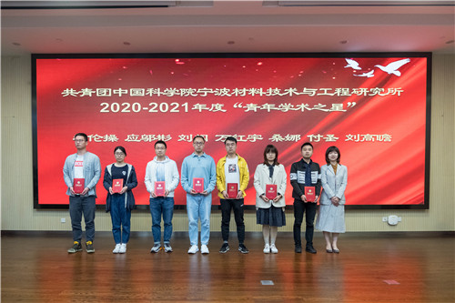 大会在庄严的国歌声中拉开帷幕。会议首先对2020-2021年度宁波材料所的优秀青年进行表彰,其中包括6名优秀团干部、19名优秀团员、5名优秀志愿者、6名青年风采之星、7名青年学术之星等。