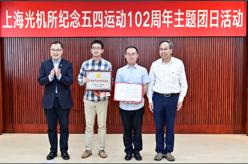 会上,邬斌和陈卫标为获得第25届中国青年五四奖章集体获奖团队:中科院上海光机所超强超短激光青年攻关团队代表许毅研究员和於亮红副研究员颁奖。