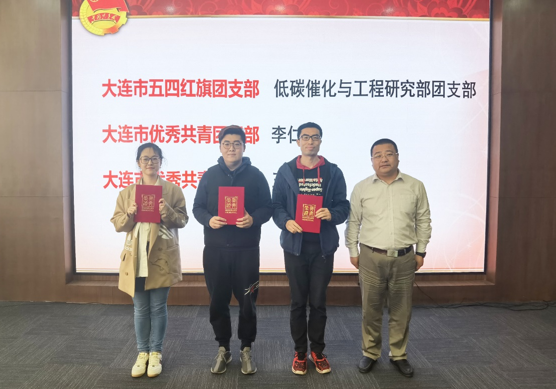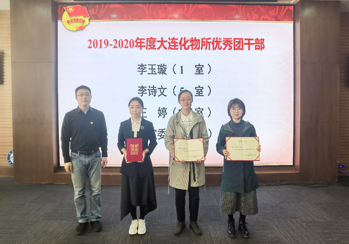团委书记熊川男首先宣读了“辽宁省青年五四奖章(集体)”、大连市青年五四奖章的获奖名单和中科院、大连市、所内“两优一先”的表彰名单。毛志远、办公室主任李振涛、党委办公室主任王书诏与熊川男分别为获奖集体与个人颁发荣誉证书。