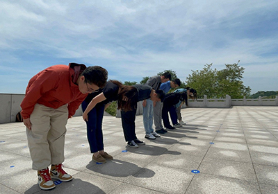 一寸山河一寸血,一抨热土一抨魂。在抗美援朝纪念馆内,栩栩如生的复原场景和丰富的档案馆藏,真实而又生动地重现了那场艰苦卓绝的战争历史。团员青年认真聆听讲解员的详细讲解,回顾抗美援朝战争历史背景、战役过程,追忆杨根思、黄继光、邱少云、毛岸英等一个个革命英烈,铭记保家卫国的感人战斗故事,观摩纪念馆中珍贵的历史图片与文物。“吃水不忘掘井人”,大家深切地感受到我们如今的红色江山来之不易,须牢记红色政权是从哪里来的,须缅怀革命先烈,传承革命英雄的爱国主义精神。参观纪念馆后,熊川男带领团委委员与团青年在抗美援朝纪念碑前向抗美援朝英雄鞠躬致敬。