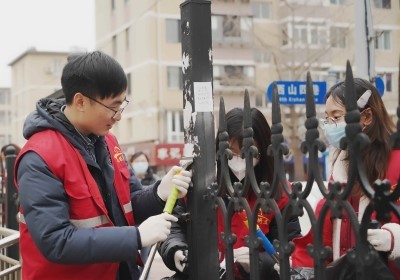 活动最后,大连化物所青年志愿者队员携带着铲刀、墙刷、喷壶等工具,对西山街道的电线杆、围墙小广告进行铲除和清理,美化街道环境。