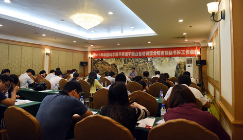 8月21日至22日,2015年度中国科学院团干部业务培训暨分院青联秘书长工作会议在长春召开。中科院党组成员、京区党委书记何岩出席会议并作专题报告,长春分院党组书记、副院长甘建国向会议致辞,京区党委副书记房自正作总结讲话。来自12个分院的近70名团干部、分院青联秘书长参加了会议。