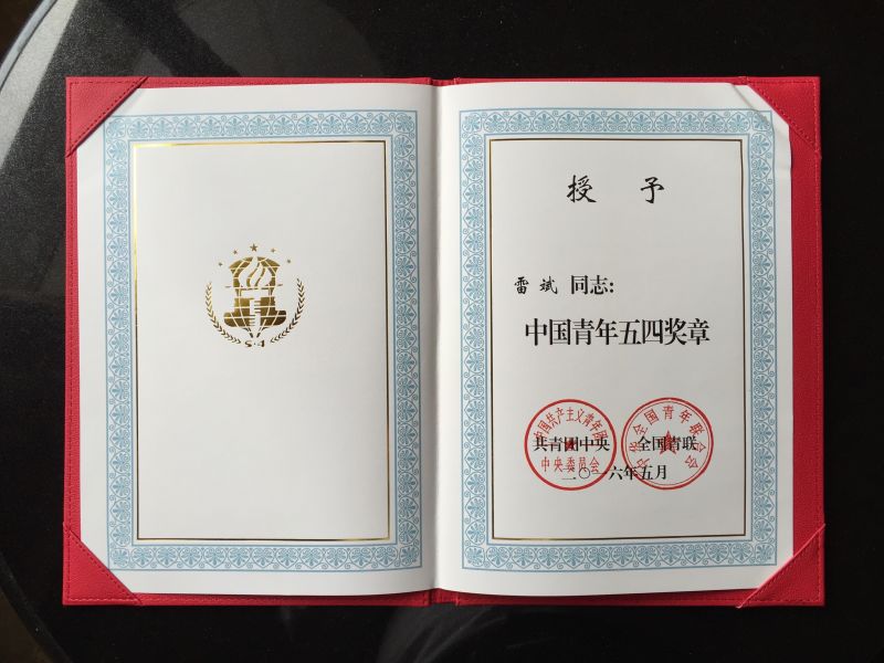 2016年5月4日,第二十届“中国青年五四奖章”获得者名单揭晓,共27名先进青年获此殊荣,经过院团委推荐电子学研究所雷斌研究员成功当选,并受邀参加青春建功中国梦“中国青年五四奖章”评选活动20周年座谈会。“中国青年五四奖章”是共青团中央、全国青联授予青年的最高荣誉,自1997年首次评选以来,中科院共有24名同志获得该称号。