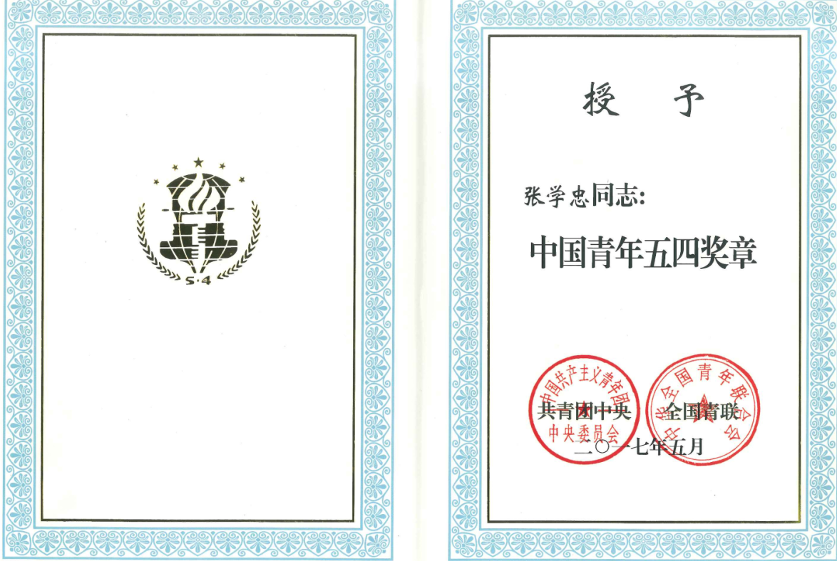 为表彰青年航天科技工作者的突出贡献,共青团中央、全国青联决定,授予6个青年集体“中国青年五四奖章集体”,授予11名青年同志“中国青年五四奖章”。其中,化学所张学忠同志参与研制的新型有机硅防护涂层材料,成为我国新型运载火箭使用的新技术之一,为保障 “长征五号”首次飞行任务的成功实施做出了突出贡献。被共青团中央、全国青年授予“中国青年五四奖章”荣誉。