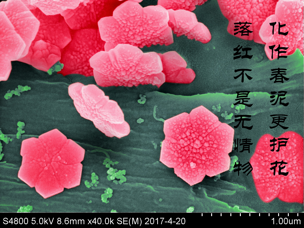 具有核壳结构的磁性近红外光复合催化材料在电镜下的形态仿佛朵朵繁花入尘,似龚自珍《己亥杂诗?浩荡离愁白日斜》中“落红不是无情物,化作春泥更护花”。花落归根,化为春泥,孕育新的春天。