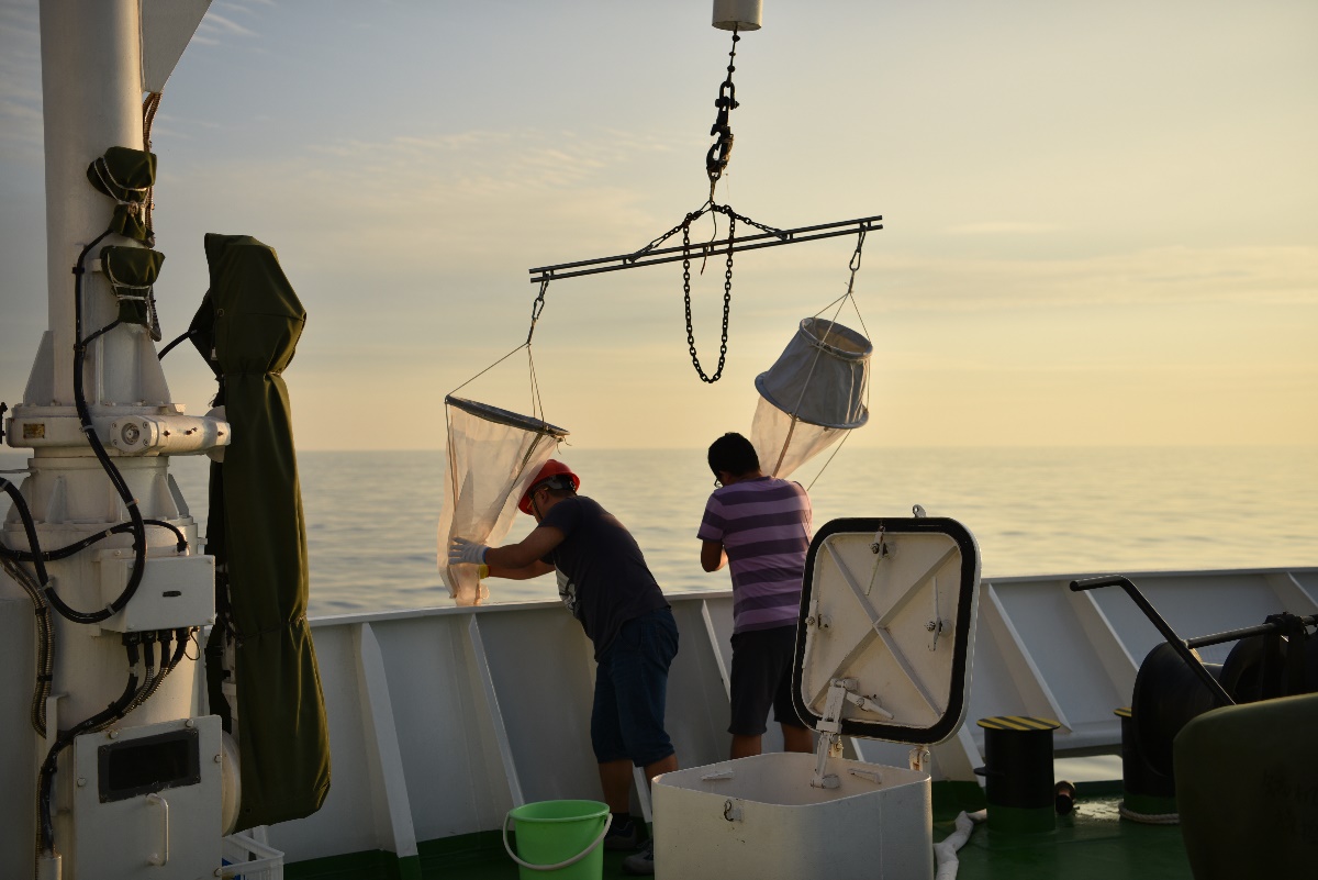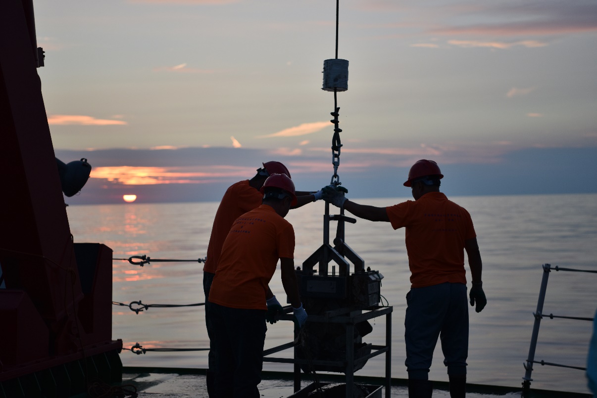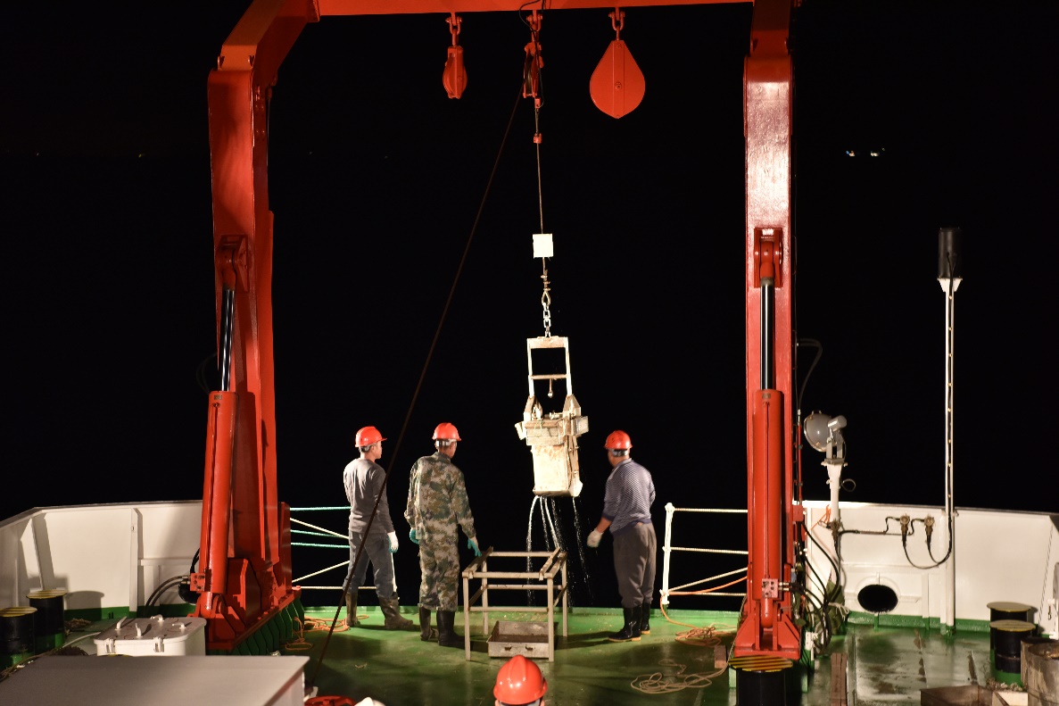 实验方法:利用创新一水文和地质绞车平台,操控CTD设备进行温度、盐度等水文参数的测量,操控采泥器、拖网等设备进行沉积物、底栖生物及浮游生物采样。