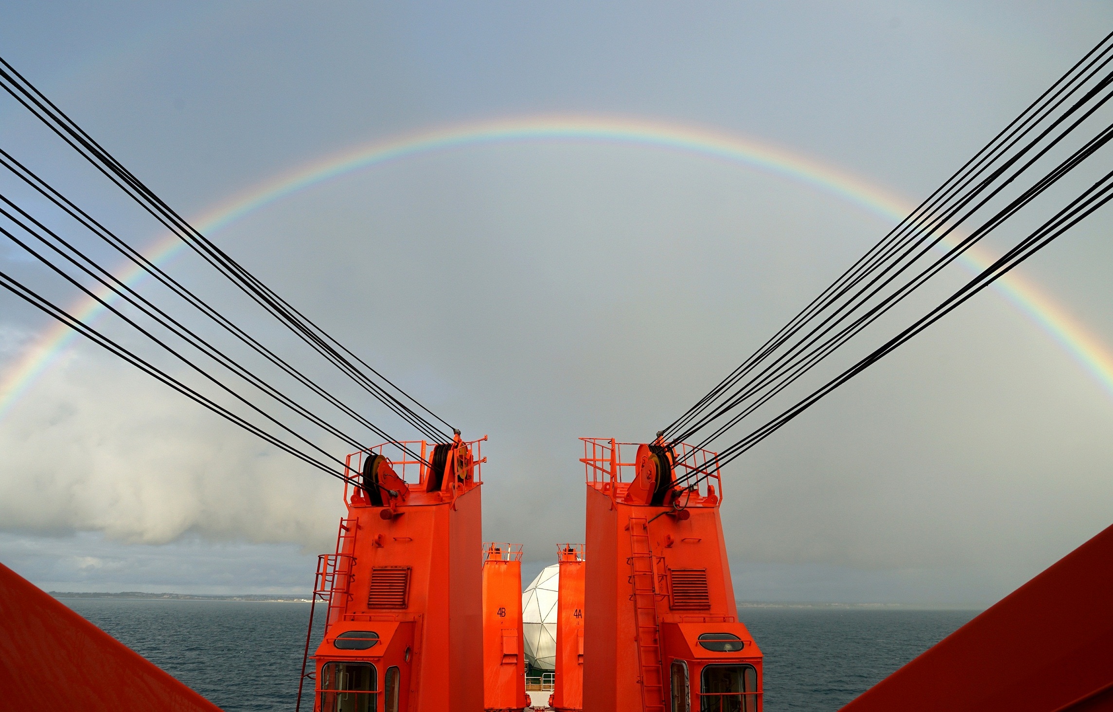 图片描述:本作品显示的中国第33次南极科考途中,雪龙船途径澳大利亚附近海面,雨后出现了一弯彩虹。随着我国加强推进海洋强国建设的战略,希望我国在未来的南极科学考察中能气势如虹,获得更大的成就。