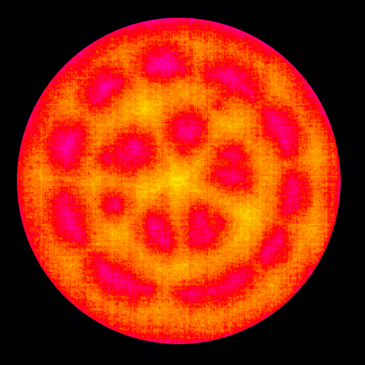 图片描述:本作品展示的是利用红外热像仪拍摄到的液体蒸发过程中产生的稳定的对流涡胞结构,由于是使用的是圆形薄液层,在产生对流涡胞的时候,就像一个美味的披萨呈现在眼前,在吃货的世界里科学也可以如此美妙。