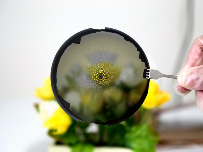 图为硅基的光子筛,可用于搭建大口径衍射光学系统的,是未来高分辨率成像的基础光学仪器。在一片薄薄的硅片上能做出如此多精细的小孔,可见科研技术人员的智慧