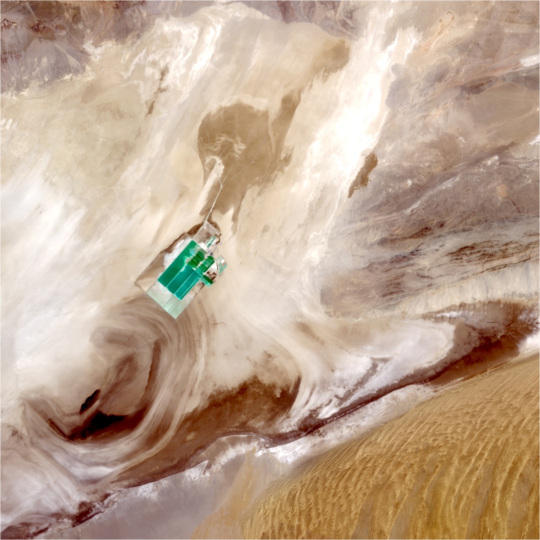 实验方法:天宫二号空间实验室在过境罗布泊地区上空时,其上搭载的宽波段成像仪成像仪对地球进行观测,在可见近红外、短波红外和热红外同时推扫成像。宽波段成像仪内部有7台相机,其中3台可见近红外相机、2台短波红外相机、2台热红外相机,多台相机同时观测,通过视场拼接实现300km的幅宽。对观测数据进行预处理、辐射校正、几何校正、图像亮度转换等处理步骤后,形成本组图片。