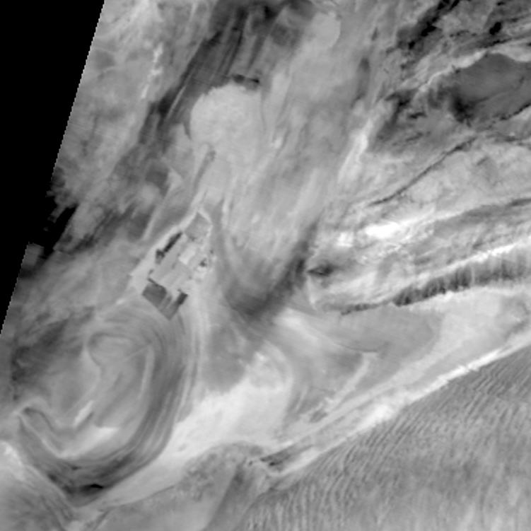 图片描述:组图中展示的是天宫二号宽波段成像仪从太空中观测到的新疆罗布泊地区图像,因罗布泊干涸湖盆宛如人耳,被誉“地球之耳”。罗布泊在若羌县境东北部,地处库姆塔格沙漠中,曾是中国第二大内陆湖。在20世纪中后期因塔里木河流量减少,周围沙漠化严重,湖面迅速退化,直至20世纪70年代末完全干涸,罗布泊从此成了寸草不生的地方,被称作“死亡之海”。三幅图像分别在不同的光谱波段进行成像,获取的图像具有相同的纹理,但在明暗上有各自的特点,反映出地物之间不同的属性差异。