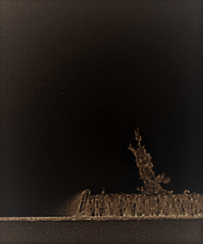 图片描述:本图是光刻胶经过深刻蚀后的电镜图片。这张图片看起来像是有一颗已经快要枯萎的树藤,在黑夜里静静的矗立在河岸边,它即将干枯的枝丫还在努力的伸向夜空,仿佛想要触碰天边的繁星。在电镜照片中,干法刻蚀工艺后经常会出现形状各异的图形,千奇百怪,细心留意观察,就能切身体会到科学也有鬼斧神工,美无处不在。