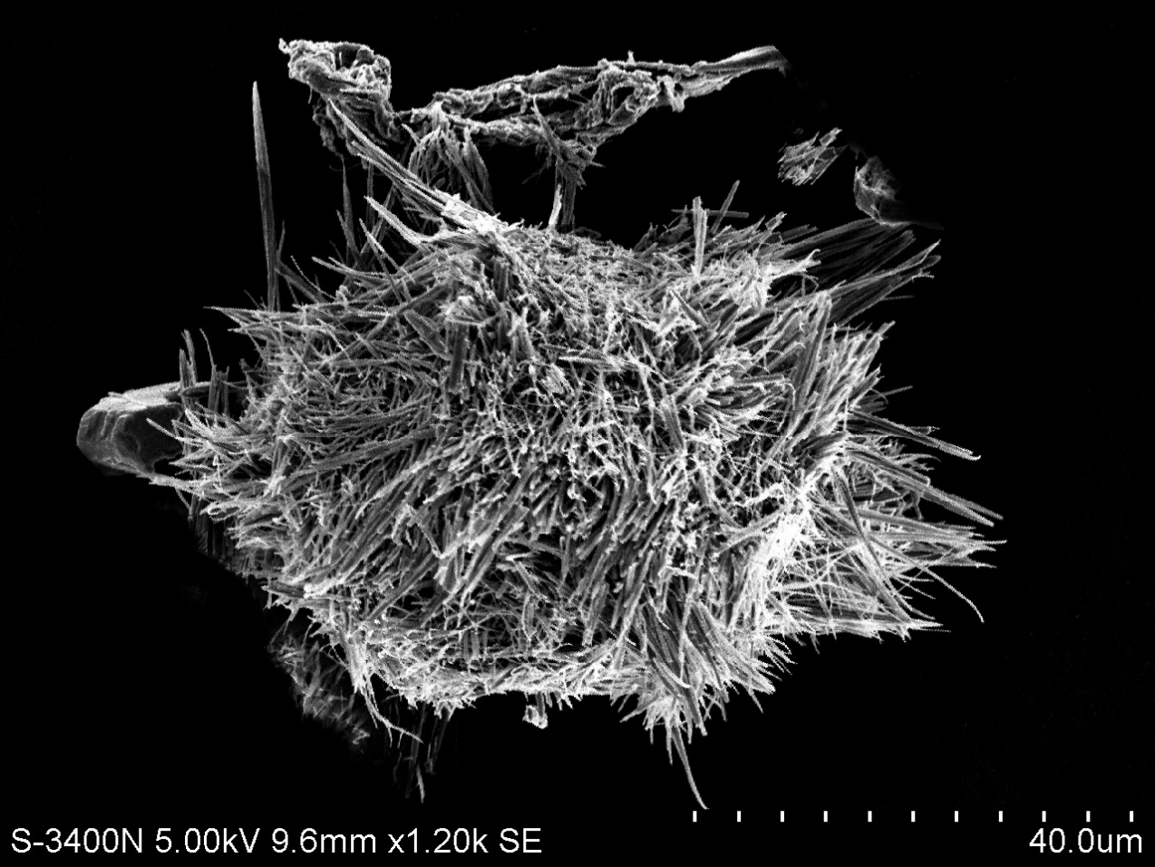 材料类型:图片是过氧化氢氧化的纸浆中细小纤维的聚集体的扫描电镜图。