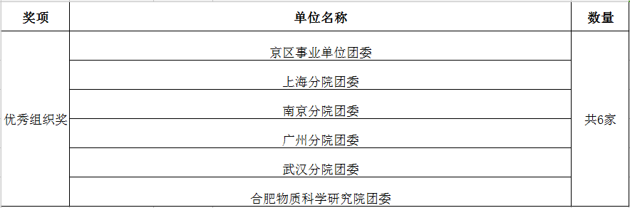 在此次比赛过程中,京区事业单位团委等6家团组织精心谋划、广泛动员,投稿踊跃、稿件质量较高,获得优秀组织奖。