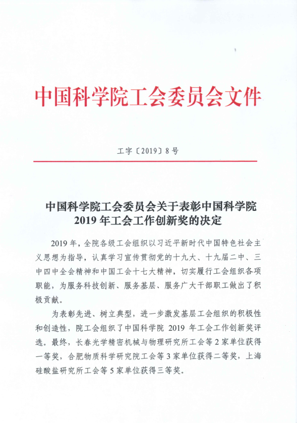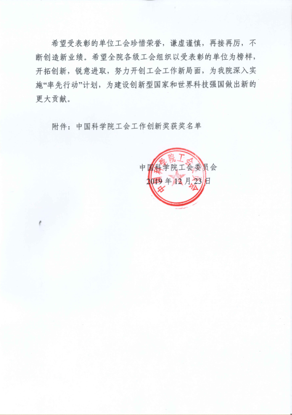 中国科学院工会委员会关于表彰中国科学院2019年工会工作创新奖的决定.pdf
