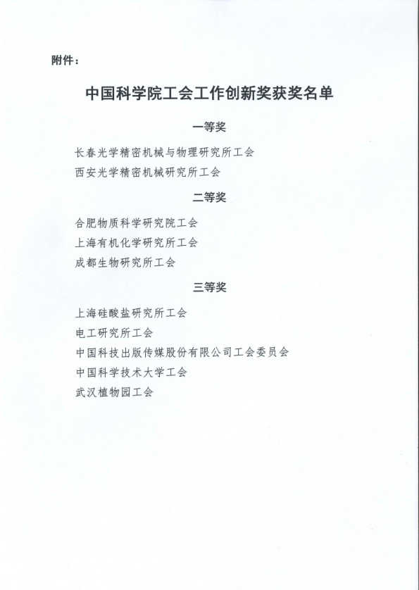 中国科学院工会委员会关于表彰中国科学院2019年工会工作创新奖的决定