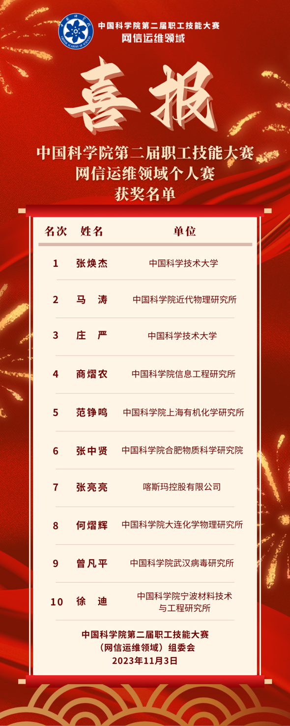 两个领域的线下比赛现场,气氛既紧张又热烈,各参赛队精神饱满、沉着冷静,团结协作、精准作答,充分展现了我院职工良好的公文处理和写作能力及网信运维技能。最终,沈阳分院代表队获得公文领域团体一等奖,刘依欢等11人获“中国科学院技能标兵(公文写作)”称号,杨璐等200人获“公文处理能手”称号。中国科学技术大学代表队获得网信运维领域团队赛一等奖,张焕杰获“中国科学院技能标兵(网信运维领域)”称号。