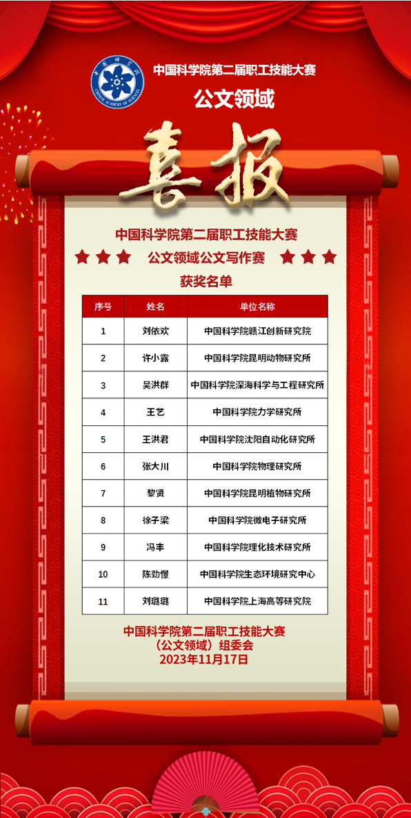 11月21-23日,中国科学院第二届职工技能大赛公文领域、网信运维领域线下比赛分别在沈阳、北京成功举办。至此,中国科学院第二届职工技能大赛两个领域的比赛全部完成,圆满收官。中国科学院党组成员、院工会主席李和风现场观摩比赛,讲话并颁奖。