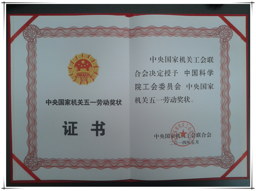 4月29日, “中央国家机关五一劳动奖状奖章颁奖仪式”在北京人民大会堂隆重举行,经中央国家机关工会联合会推荐,中国科学院工会委员会荣获“中央国家机关五一劳动奖状”。