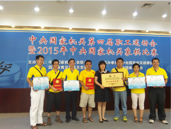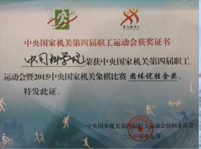 2015年7月12日下午,在中国棋院举行了中央国家机关第四届职工运动会象棋赛颁奖仪式。中科院象棋代表队不畏强手,勇于拼搏,取得了喜人佳绩,在48个参赛队中获得团体金奖第三名的好成绩(金奖取前六),较比上届团体第六的成绩更进一步,超越了自我。中国桥牌协会副主席徐双未、中央国家机关工委统战(群工)部副部长孔冈、中国象棋协会副主席陈泽兰出席了闭幕式并为获奖棋手颁了奖。