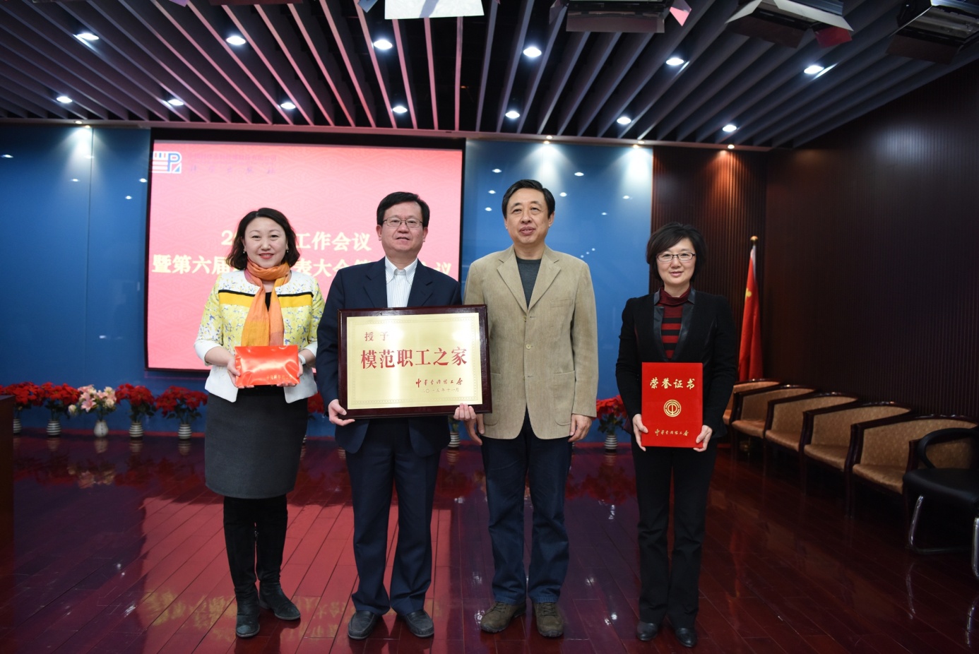 1月22日,院党组成员、院工会主席何岩一行到科学出版社颁发“全国模范职工之家”荣誉奖牌,京区党委副书记房自正、院工会常务副主席霍妍丽,科学出版社董事长、总经理林鹏,党委书记、工会主席李锋,党委副书记来豫蓉等党政领导班子和社工会委员、职代会代表参加了颁奖活动。