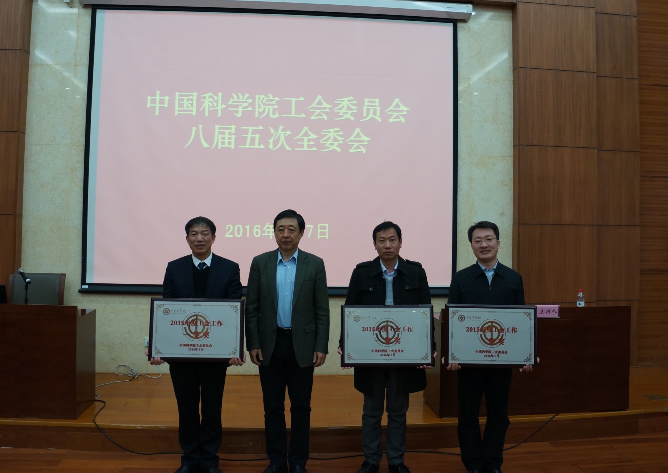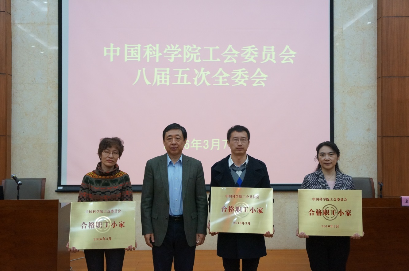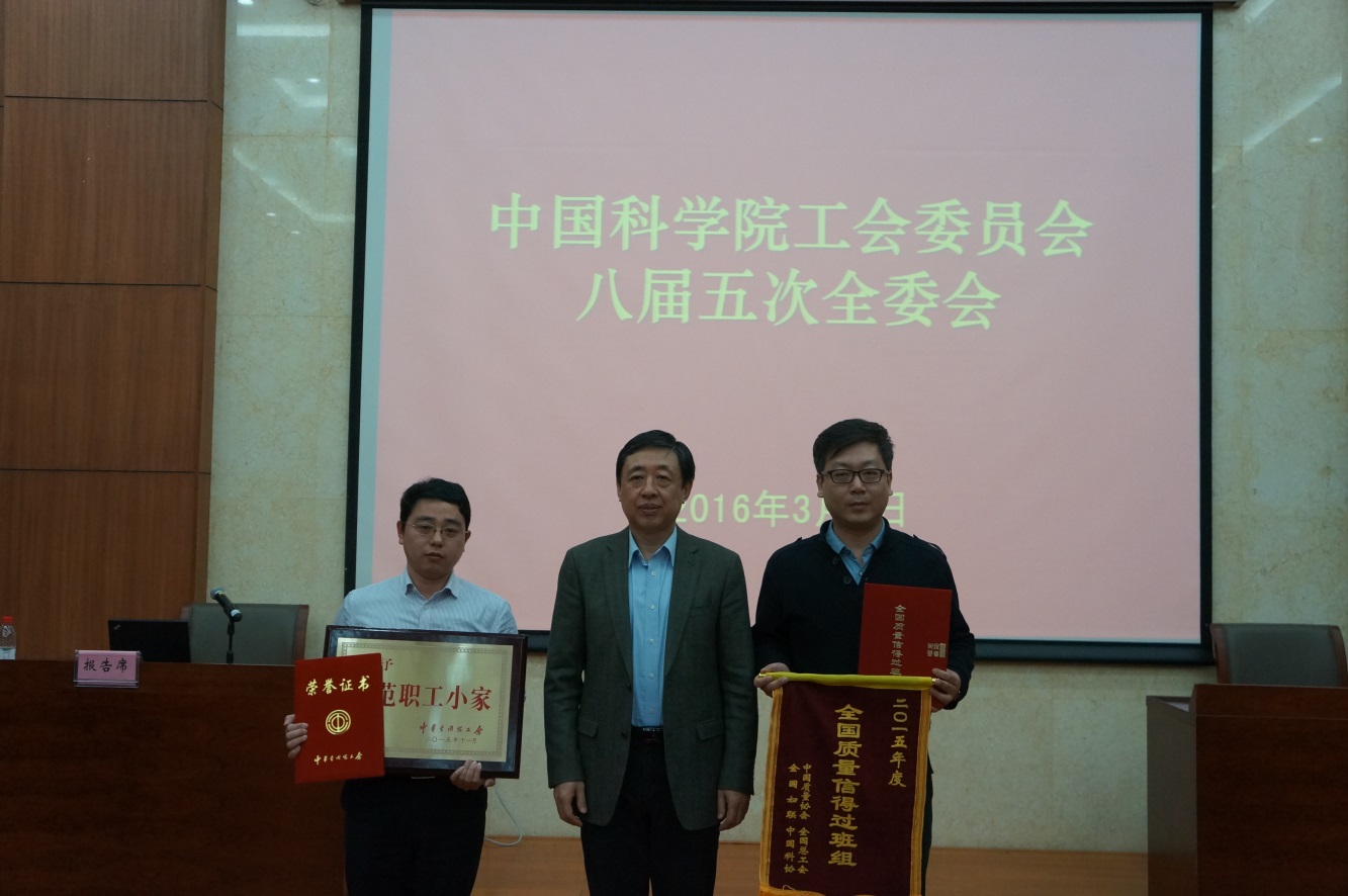 会议还对荣获2015年度工会工作奖、2015年度全国质量信得过班组、全国模范职工小家、全国优秀工会工作者称号的优秀集体和先进个人进行了表彰,为获得合格职工小家称号的3个基层单位分工会进行了授牌。