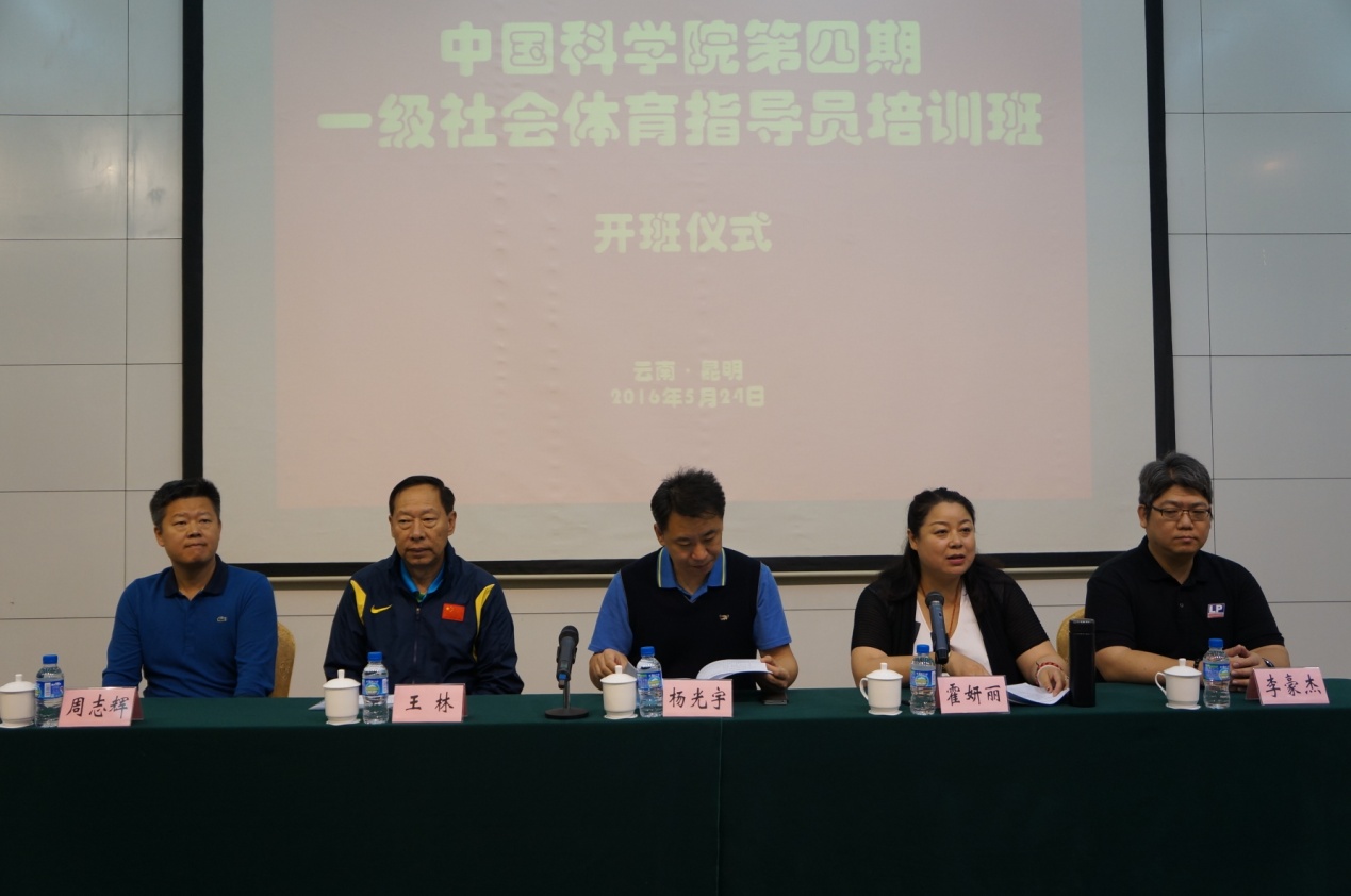 5月23日—27日,由中国科学院体育协会主办,昆明分院承办的“中国科学院第四期一级社会体育指导员培训班”在昆明红塔体育中心成功举办。来自全院97家单位的135名人员参加了此次培训。院体协常务副主席、京区党委副书记房自正出席此次培训并作总结讲话,院体协副主席、昆明分院分党组书记周杰为学员颁发合格证书,国家体育总局群体司组织建设处处长杨光宇出席并为全体学员讲述“全民健身基础理论”,开班仪式由院体协秘书长、京区党委群工部部长霍妍丽主持。
