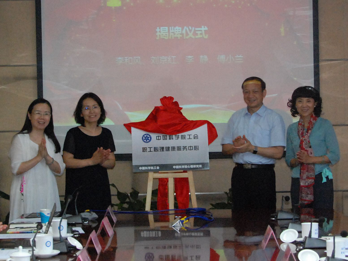 随后,李和风、刘京红、李静、傅小兰共同为中心揭牌,宣告中心正式成立。王宇星介绍了中心章程和组织架构;中国科学院工会职工心理健康服务中心专家委员会主任、中国科学院心理研究所研究员、中科院心理健康服务体系建设项目首席科学家张向阳代表专家委员会发言;心理所应用发展部主任、中心副主任及工作组组长张莉介绍了下半年中心具体要落实的工作。