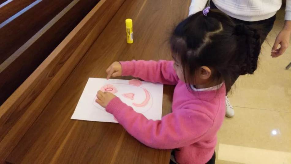 上午的低龄组亲子活动主要内容包括:破冰游戏“松鼠与大树”;主体活动“我为大家介绍我(爸爸/妈妈/孩子)”,用最能形容爸爸/妈妈/孩子的话介绍,以此折射家长和孩子在彼此心中的形象,并加深团体成员间的认识;主体活动“五官大作战”,家长与孩子共同完成五官绘画并剪切,在A4纸上画出脸盘。完成后,家长蒙面,由孩子指导把五官贴到在A4纸上画出的脸盘的正确位置。孩子只能语音指导,不能动手帮助家长。