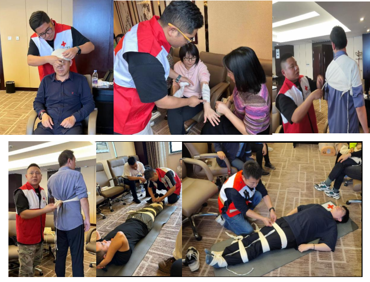 本次培训采取理论教学与实操演练相结合的方式,邀请中国红十字会总会训练中心和四川红十字应急救援救护中心老师授课。在理论教学环节,老师详细介绍了红十字现场急救的原则、目的、程序等基本常识,着重讲解了心肺复苏、人工呼吸、气道异物梗阻、AED使用和创伤包扎等应急救护原理和技术方法。