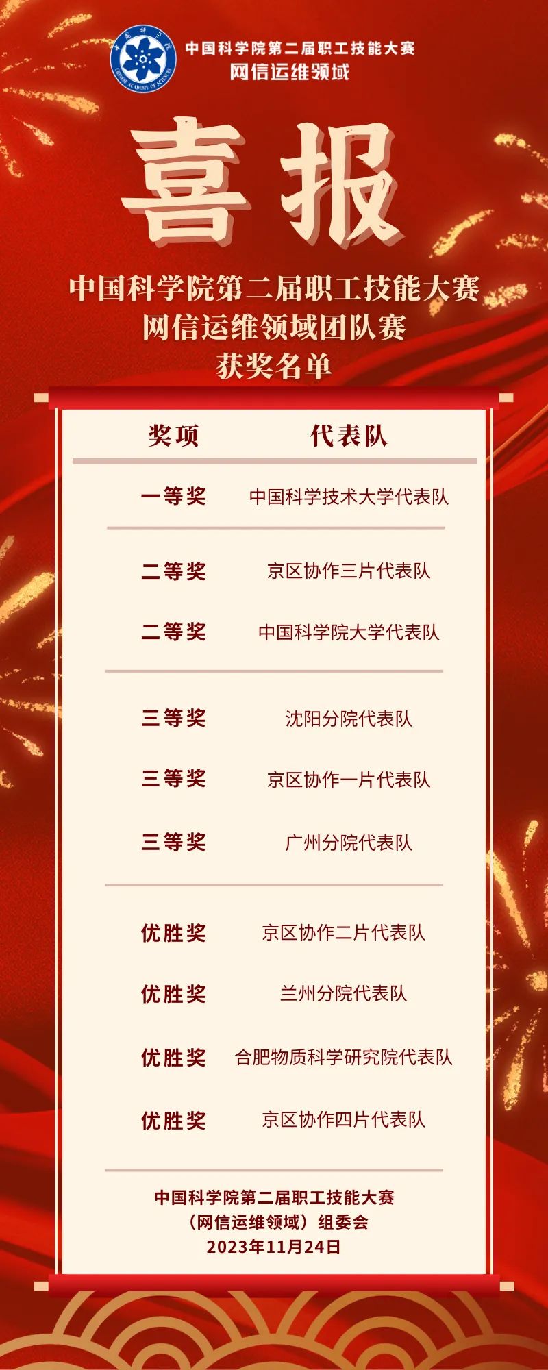 两个领域的线下比赛现场,气氛既紧张又热烈,各参赛队精神饱满、沉着冷静,团结协作、精准作答,充分展现了我院职工良好的公文处理和写作能力及网信运维技能。最终,沈阳分院代表队获得公文领域团体一等奖,刘依欢等11人获“中国科学院技能标兵(公文写作)”称号,杨璐等200人获“公文处理能手”称号。中国科学技术大学代表队获得网信运维领域团队赛一等奖,张焕杰获“中国科学院技能标兵(网信运维领域)”称号。