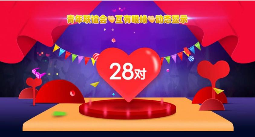 活动精心设计、内容丰富,设置了破冰游戏、卡牌风云、齐心协力、爱情七色光等精彩活动,他们在游戏中彼此了解、彼此信任、彼此支持,大家你追我赶、斗智斗力、笑声不断,现场气氛迅速升温。最终,线上互送鲜花环节互选成功28对,线下赠送鲜花环节牵手成功20对。