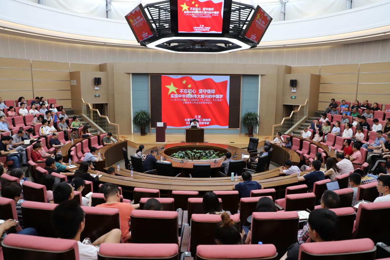 为使全所党员进一步深刻理解“不忘初心、牢记使命”主题教育活动的重要意义和深刻内涵,7月15日下午,长春光机所“长光大讲堂”邀请长春市委党校王健教授做题为《不忘初心,坚守信仰,实现中华民族伟大复兴的中国梦》专题党课。所党委委员、处级以上党员领导干部、各党支部/总支委员以及学生党员等240余人参加了党课。会议由长春光机所党委委员、党委办公室主任王晓慧主持。