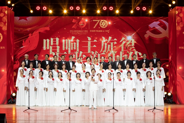 来自北京分院十余家单位的十五个节目精彩纷呈,情景舞剧、混声合唱、群口相声、诗歌朗诵等节目形式多样,内容丰富,充分展现出中科院广大科技工作者的精神面貌和别样风采。节目或缅怀前辈爱国情操,或歌颂创新奋斗精神,或抒发科技报国情怀。身在超净实验室、试验场站、野外基地、南海之滨、青藏冰川河源等地的科研团队发来场外祝福视频,齐声祝福科学院生日快乐,祝愿祖国繁荣富强。伴随着阵阵掌声和欢呼声,观众们手舞五星红旗,起身一起合唱《我和我的祖国》,台上台下顿时激荡起激动人心的乐海脉搏。