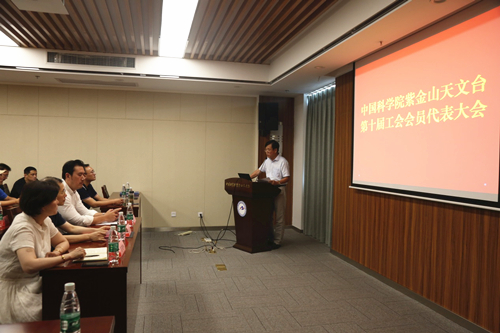 2019年7月23日,中国科学院紫金山天文台召开第十届工会会员代表大会,工会会员代表43人参加会议。江苏省教育科技工会副主席崔文华、科研院所部部长吴宝城、中国科学院南京分院工会主席范晓松、紫台党委书记赵长印、纪委书记张建成等应邀出席大会。会议由第九届工会委员会主席肖伟主持。