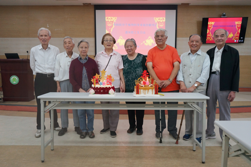 白发朱颜登八旬大寿,丰衣足食享幸福晚年。生日会上,大家共叙曾经的工作往事,赞美现在的美好生活,同时也感受到了分子植物卓越中心对他们的关怀和祝福。伴随着欢快的《生日快乐》歌,寿星们吹灭生日蜡烛许下生日愿望。