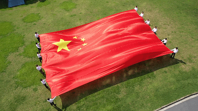 SIBCB科研大楼前的大草坪上巨幅五星红旗迎风飘扬