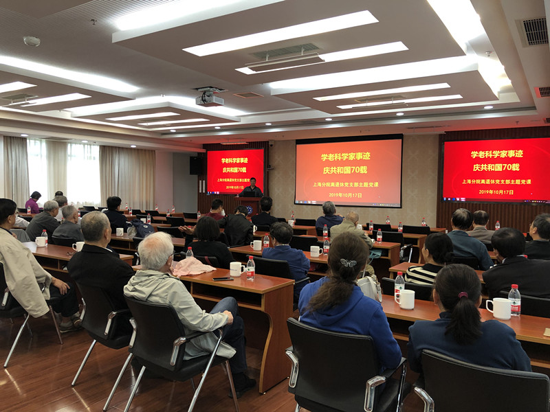 当天下午,分院离退休党支部组织全体党员开展了“学老科学家事迹,庆共和国70载”主题党课活动。全体党员收看了老科学家严东生先生的传记影片,共同缅怀了为新中国科技事业发展作出卓越贡献的老一辈科学家,共同回忆了建国70年,建院70年的风雨历程。老同志们纷纷表示,作为一名中国科学院人由衷地为祖国为科学院的发展感到骄傲与自豪。