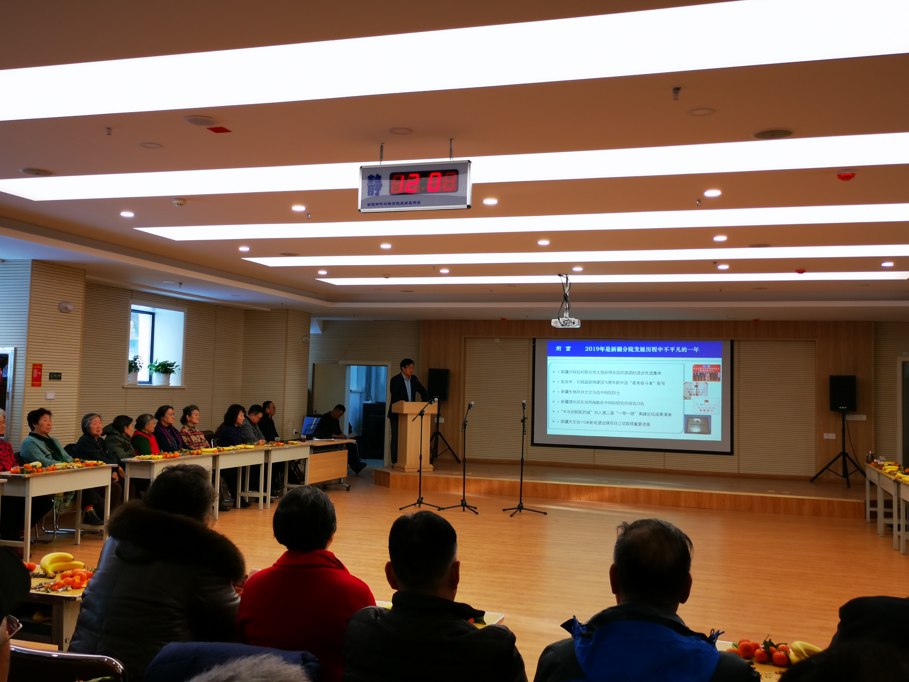 张小雷向离退休职工介绍了新疆分院2019年工作进展以及2020年的工作思路。并祝福全体离退休职工新年愉快、身体健康、阖家幸福!