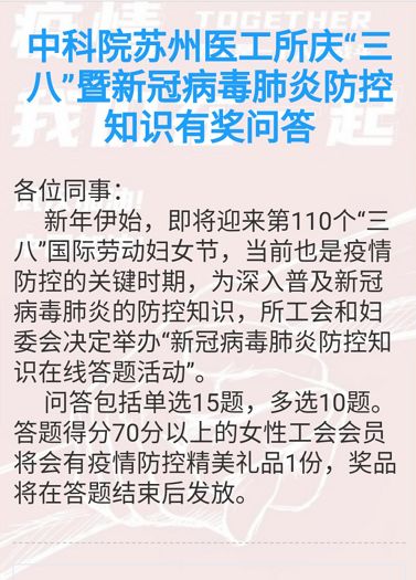 研究所近百名女性职工参与答题。妇委会还给每位答题的女职工准备了一份精美的防疫大礼包。