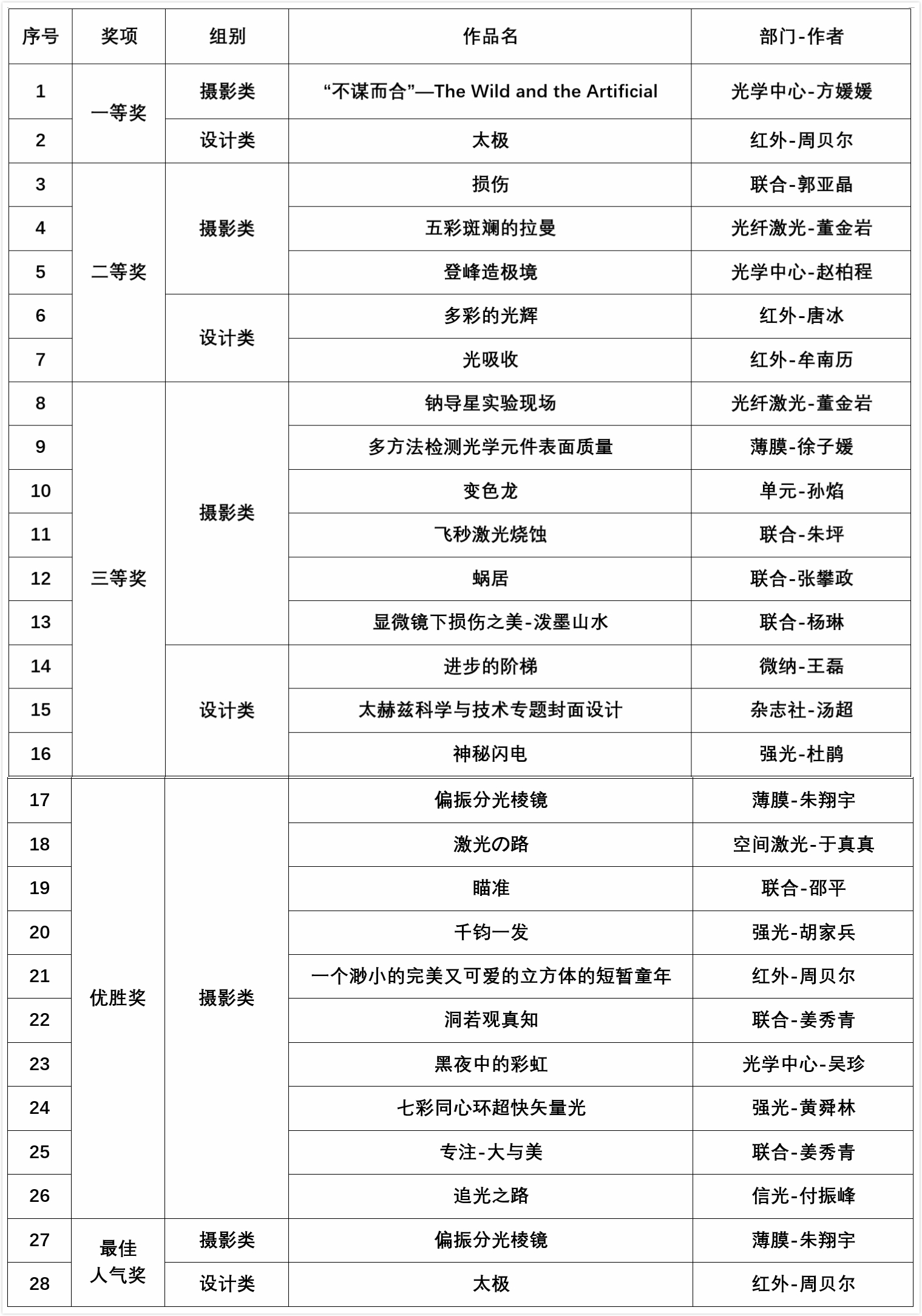 用镜头定格科研过程中的华美与震撼,用图片记录科研过程中的感动与惊喜。通过本次图片大赛活动,一方面展现了激光科学魅力,另一方面在全所营造了聚力创新争先良好氛围。(所团委、科学传播办公室供稿)