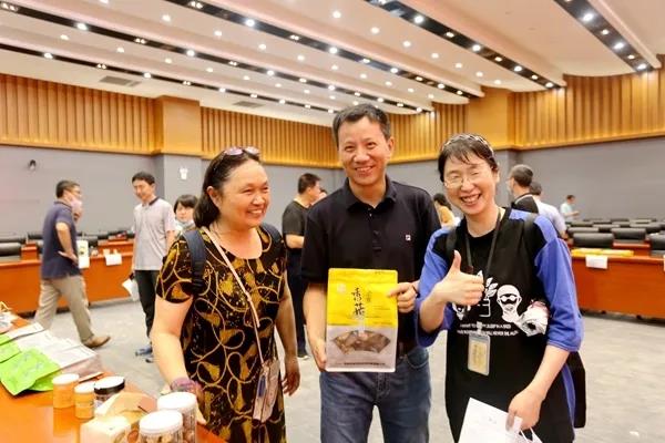 选购会现场,各农产品的代言人在台上热情宣讲各自农产品的特点,学校各个分工会的代表们则积极主动地询问,驻点扶贫干部也在一旁帮助推介。