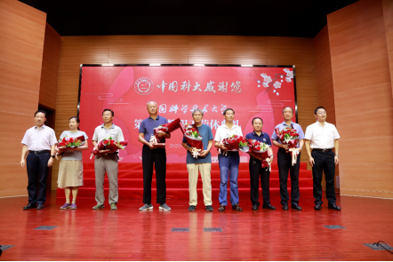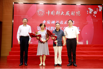 随后,校党委书记舒歌群、校长包信和等校领导为王水院士、施蕴渝院士等2019年荣休教职工颁发纪念品并送上鲜花。