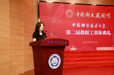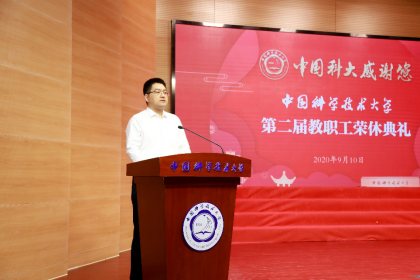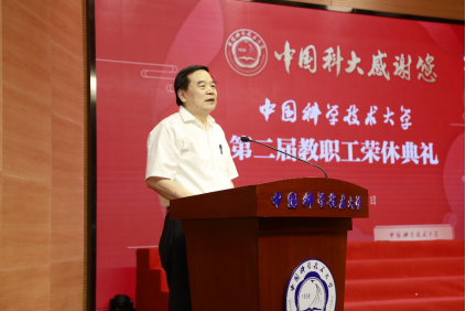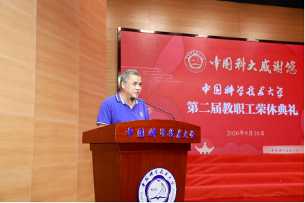 典礼上,荣休教职工代表发言。信息科学技术学院付忠谦教授表示,自1978年考入科大后,参与和见证了学校几十年的发展,对学校怀有深厚的情谊,为学校今日的成就感到自豪。退休后,将继续关注学校的各项改革发展,积极发挥余热,助力学校“双一流”建设。