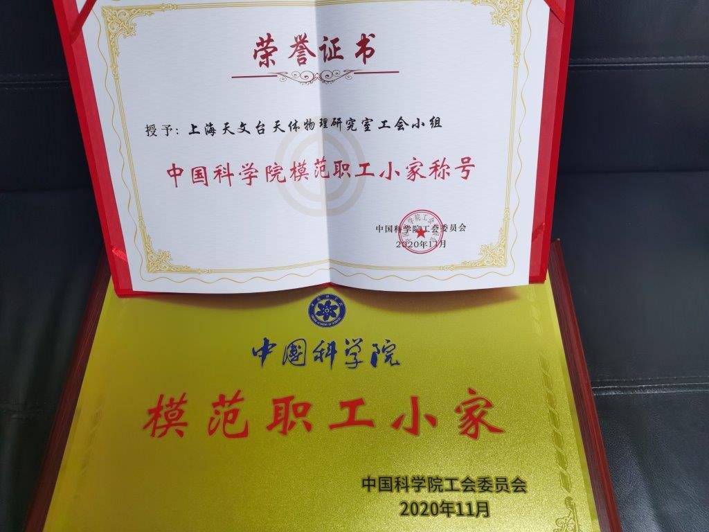 经我台各工会小组民主推荐,上海分院工会审核同意,报中科院工会审定,上海天文台天体物理研究室工会小组被授予中国科学院模范职工小家荣誉称号,党委书记侯金良被授予中国科学院优秀工会之友荣誉称号,工会干事丁天被授予中国科学院优秀工会积极分子荣誉称号。